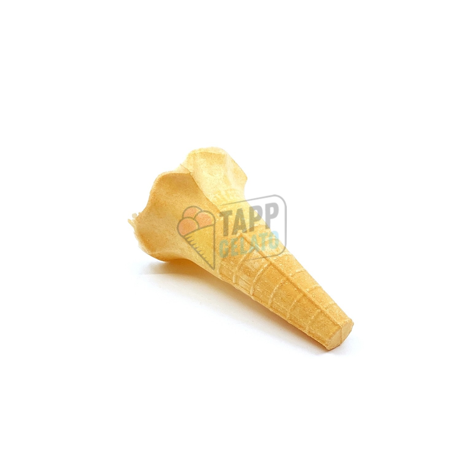 Cornet din aluat de vafa cu o forma deosebita. Ideal pentru inghetata soft. Se aseaza foarte bine inghetata pe marginile cornetului si nu se inmoaie la fel de repede ca o vafa traditionala.