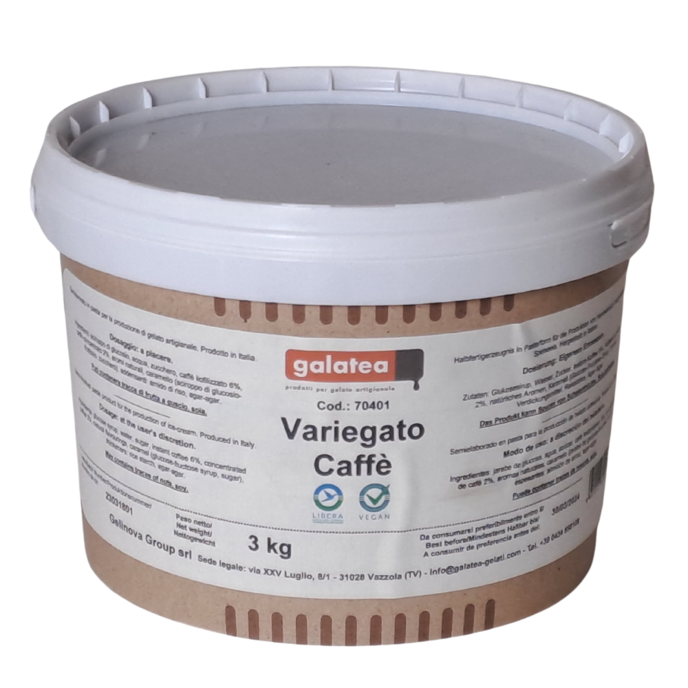 Variegato Cafea, cu textura sa densă și aromată, este perfect pentru a conferi o notă distinctă de cafea și o culoare atrăgătoare în orice înghețată artizanală.